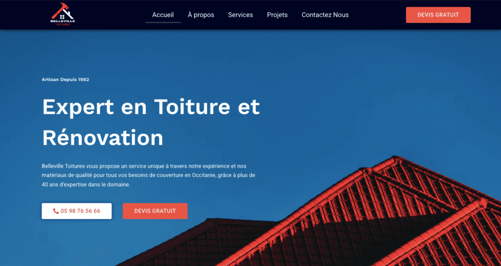 Votre commercial digital 24/7. Un design, responsive, conçu pour générer des demandes de devis, appels et des contacts qualifiés.