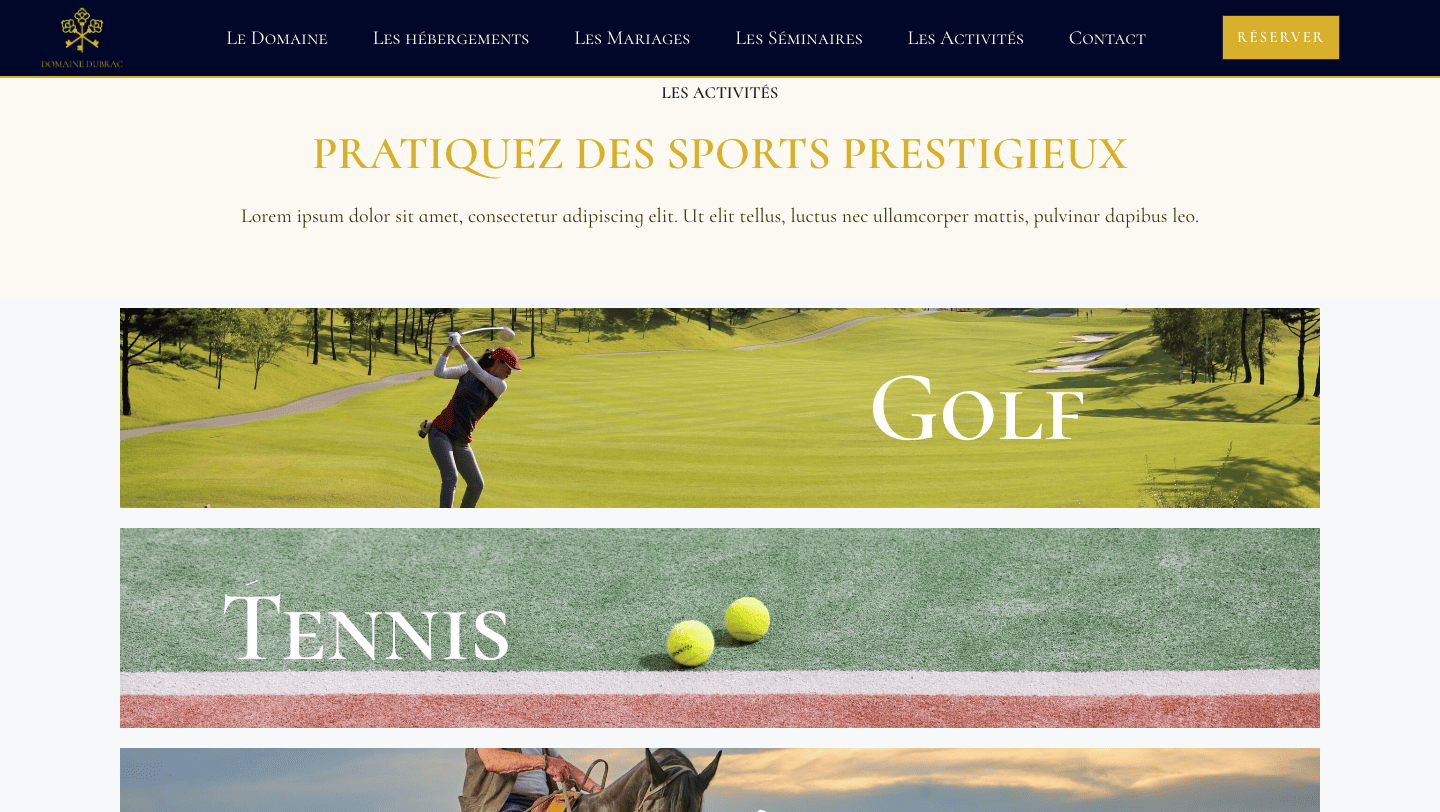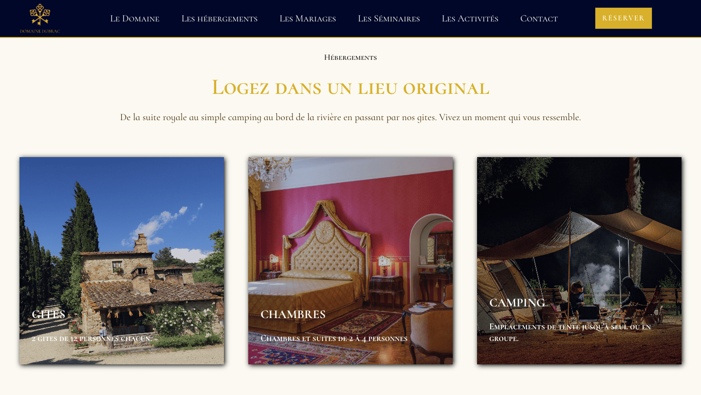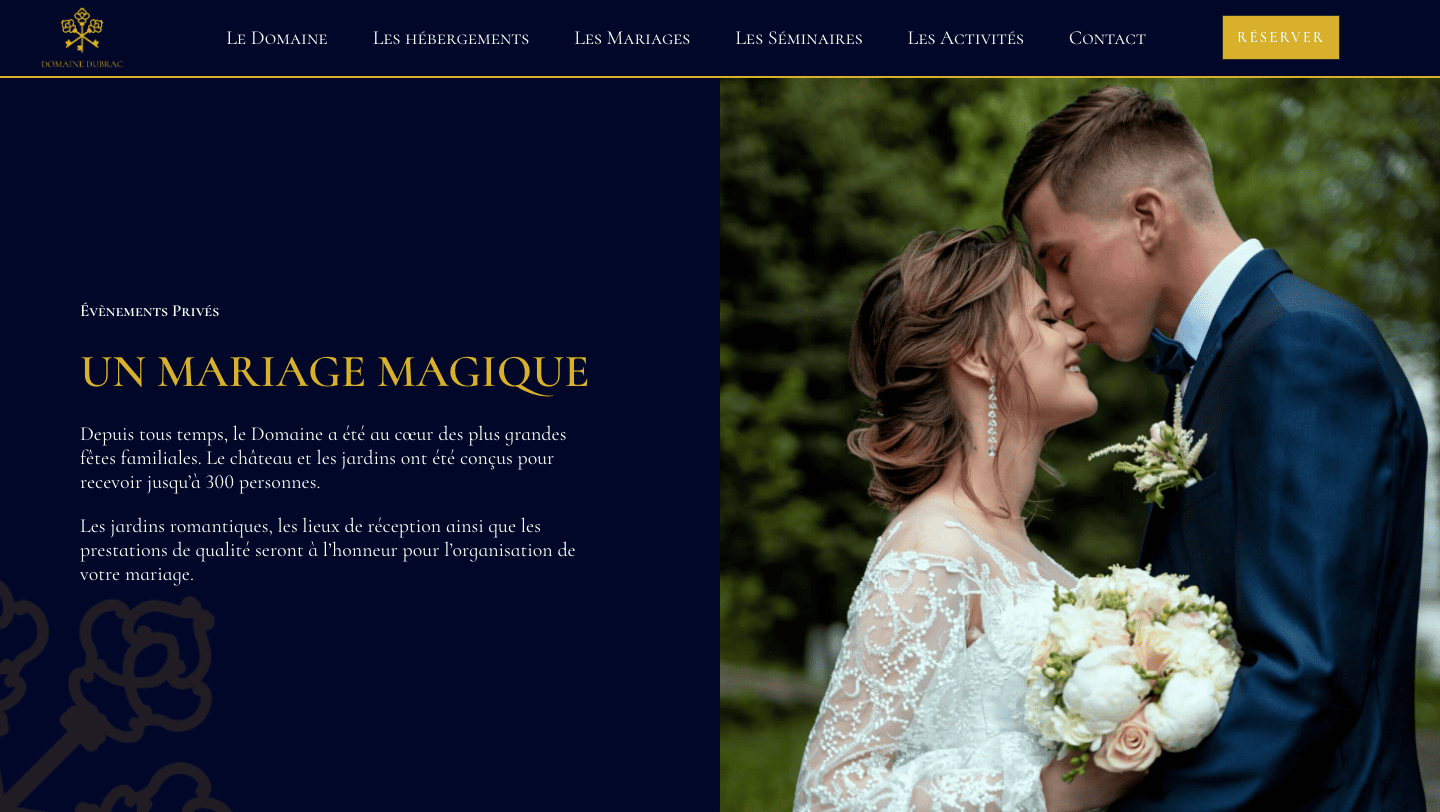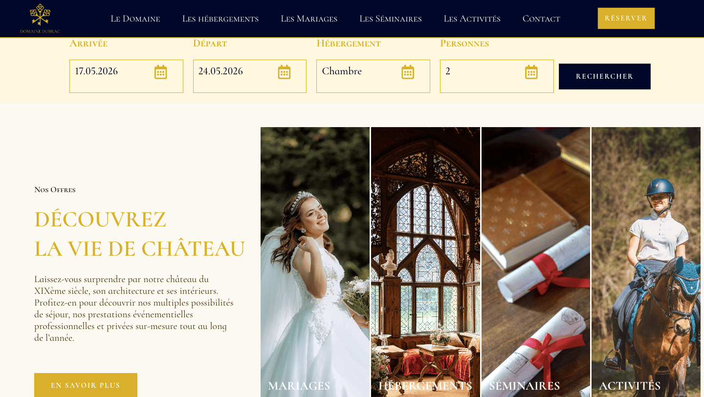 Conception et développement d’un site vitrine élégant avec réservation pour ce domaine qui accueille mariages, séminaires, gîtes et camping.