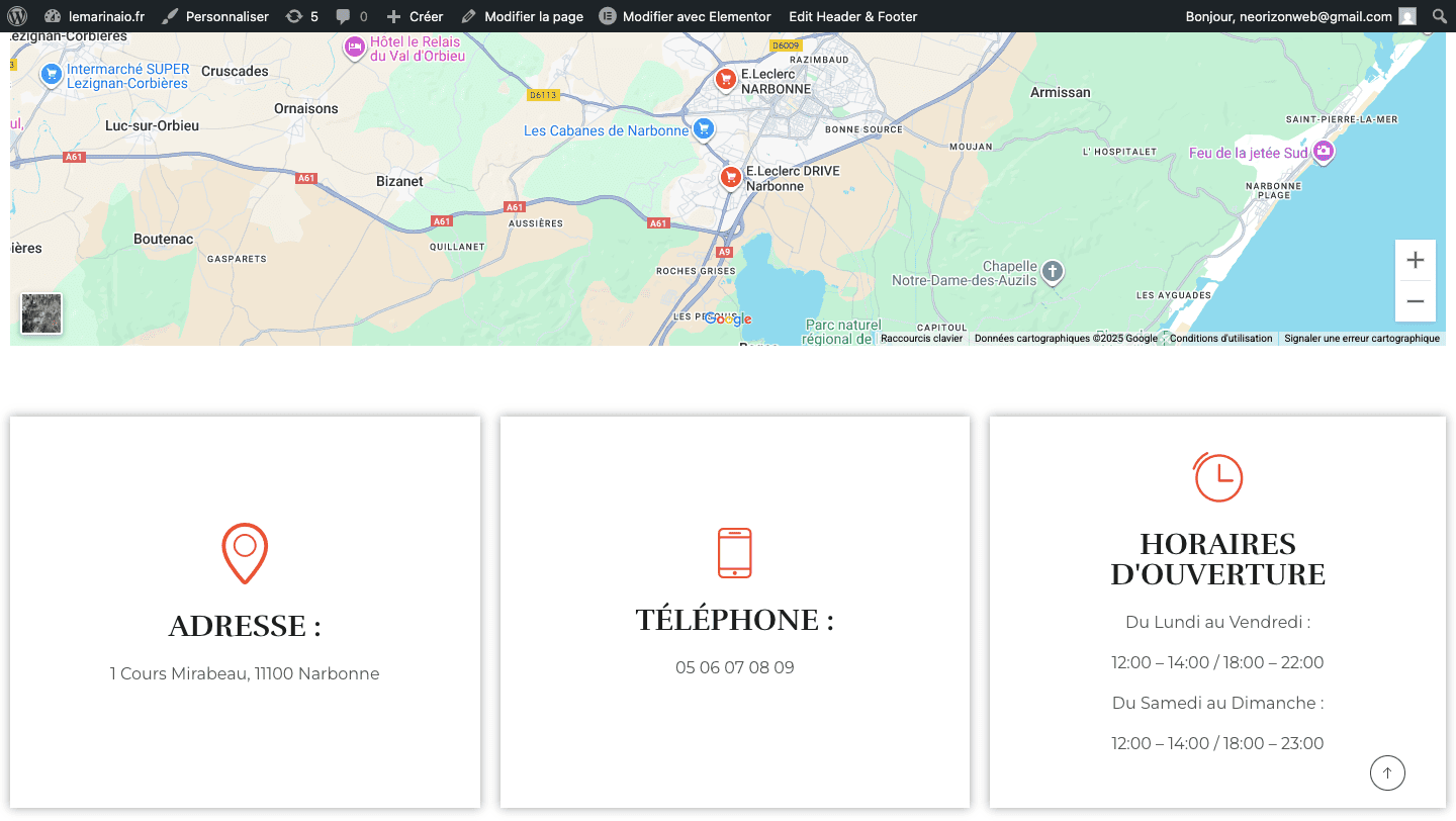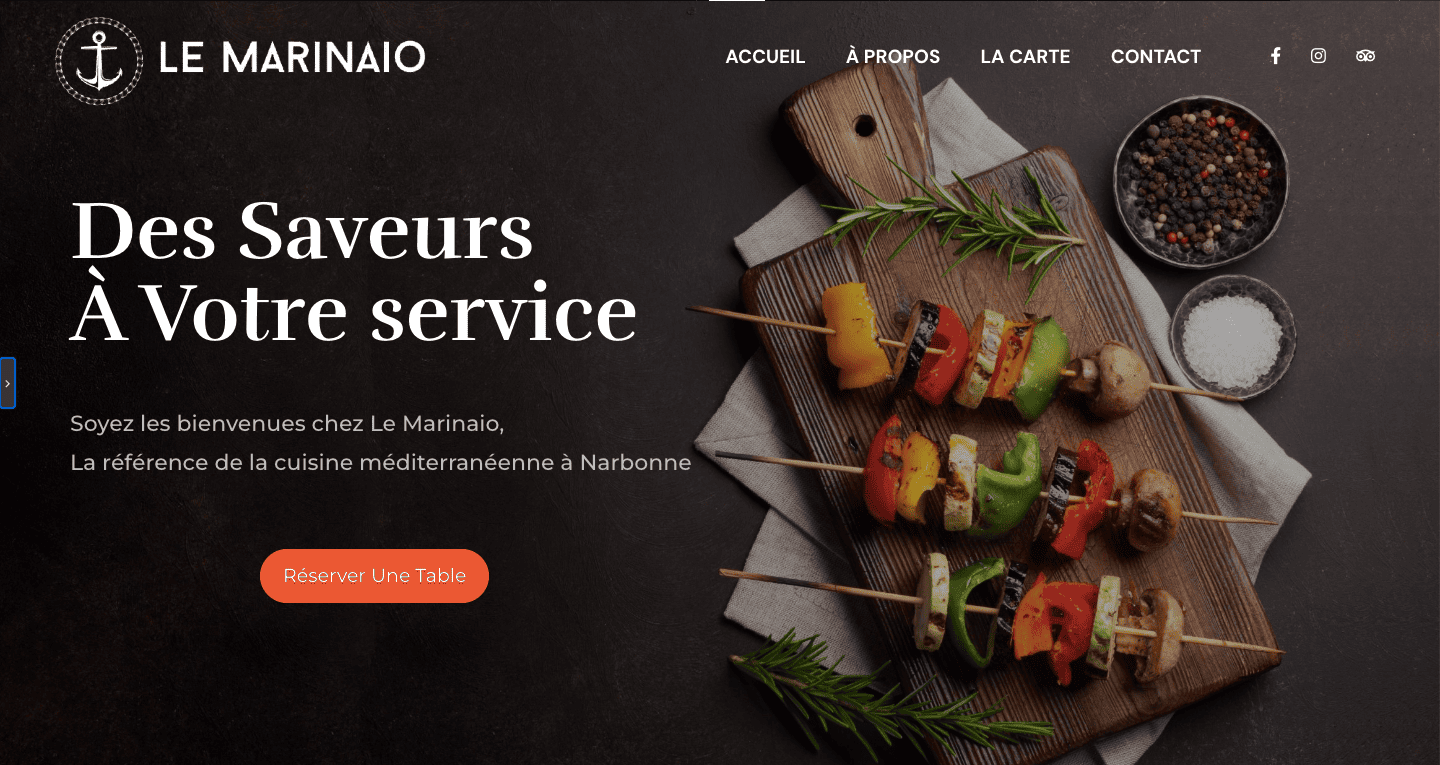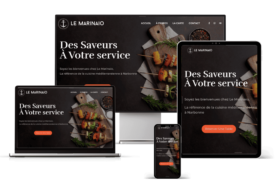 Réalisation d’un site vitrine de restaurant simple, élégant et efficace pour Le Marinaio, un établissement situé à Narbonne.