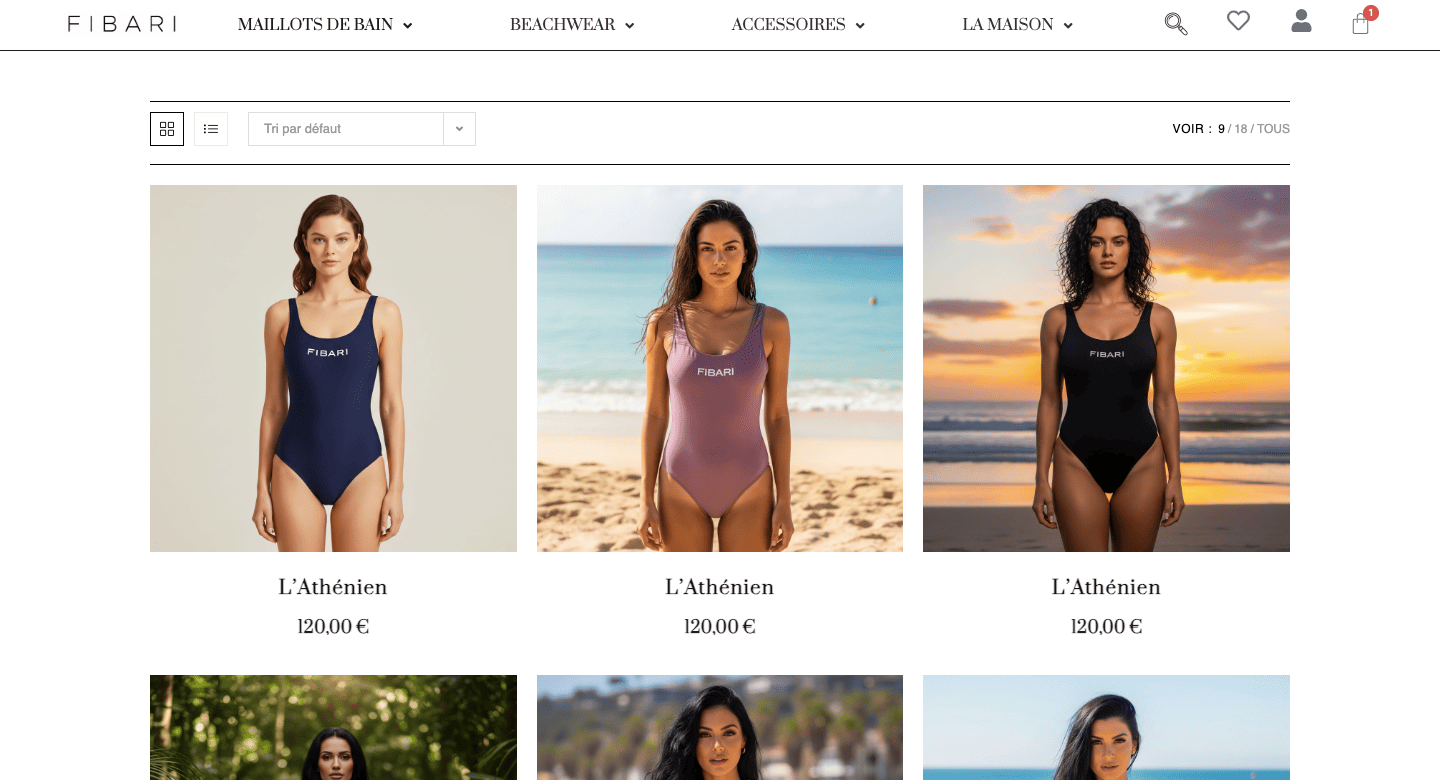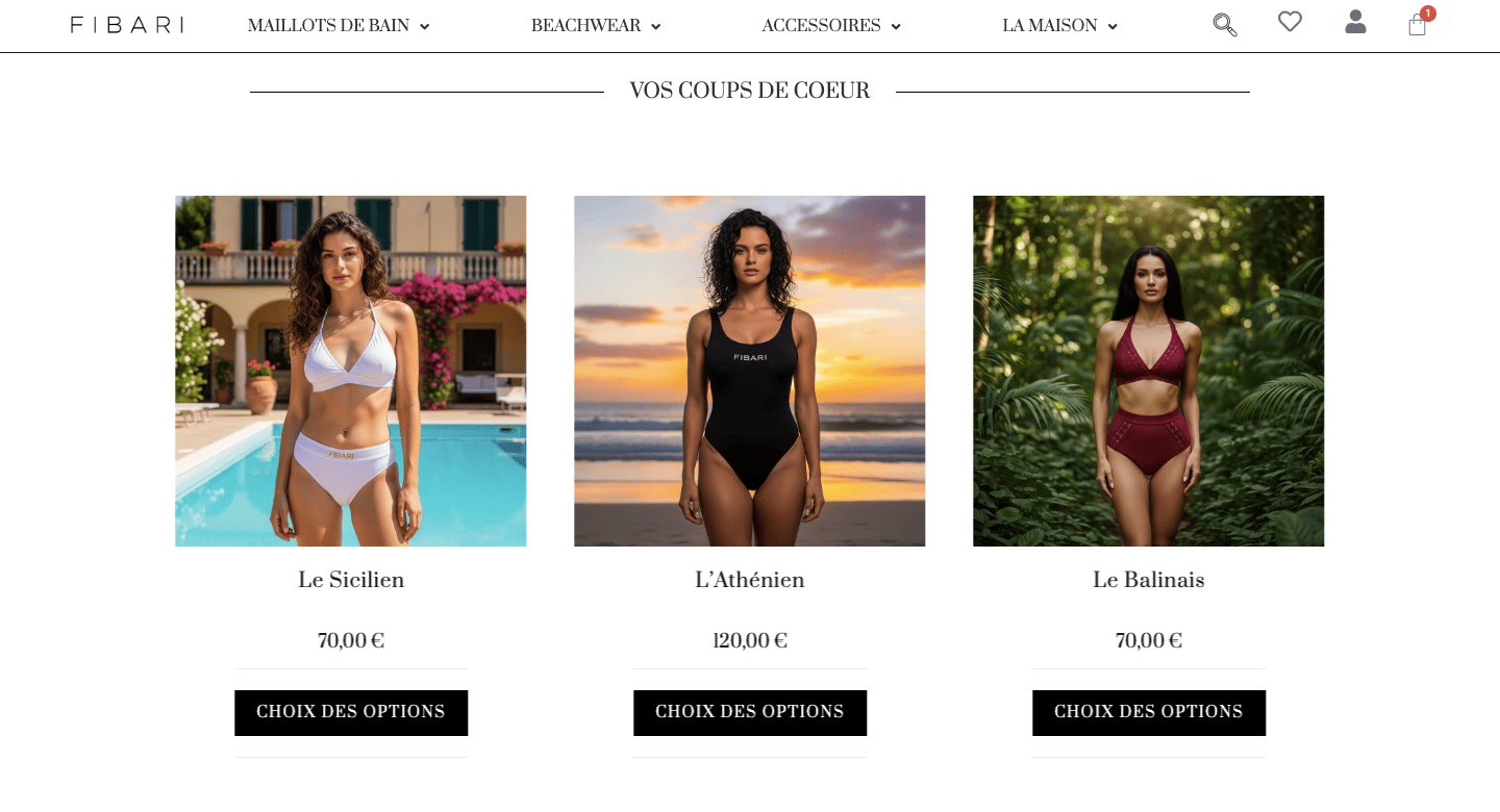Conception et développement d’un site e-commerce complet pour la marque de maillots de bain Fibari.