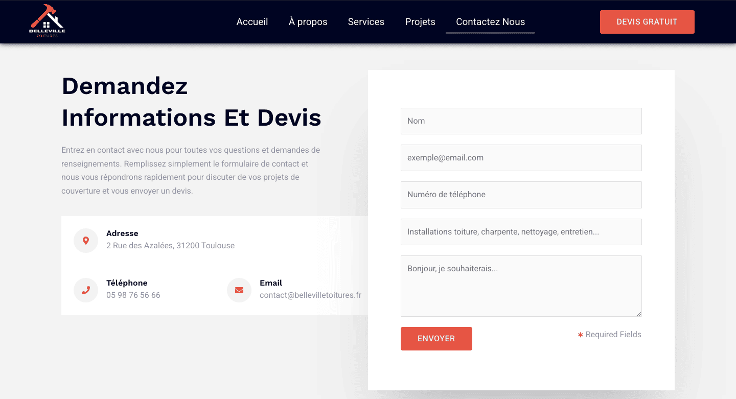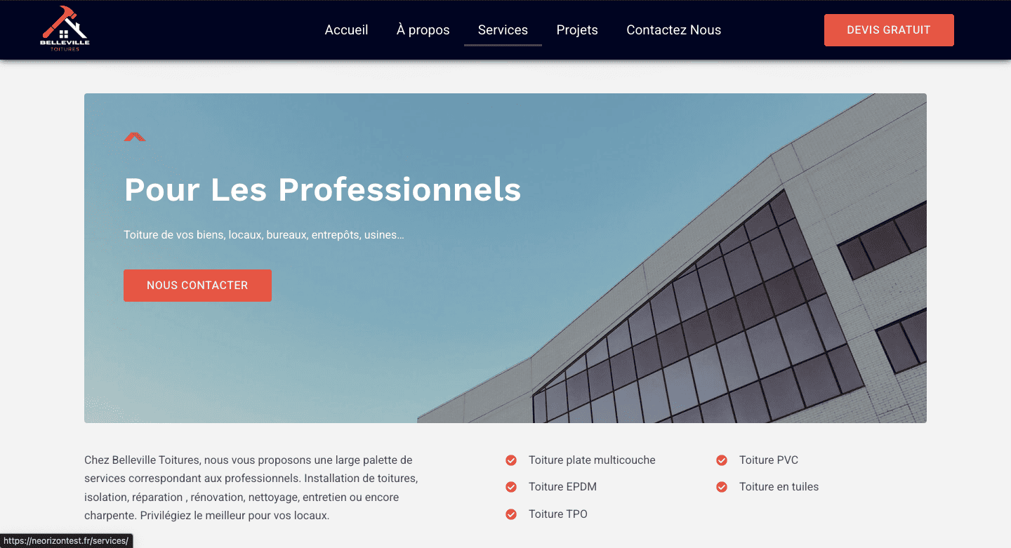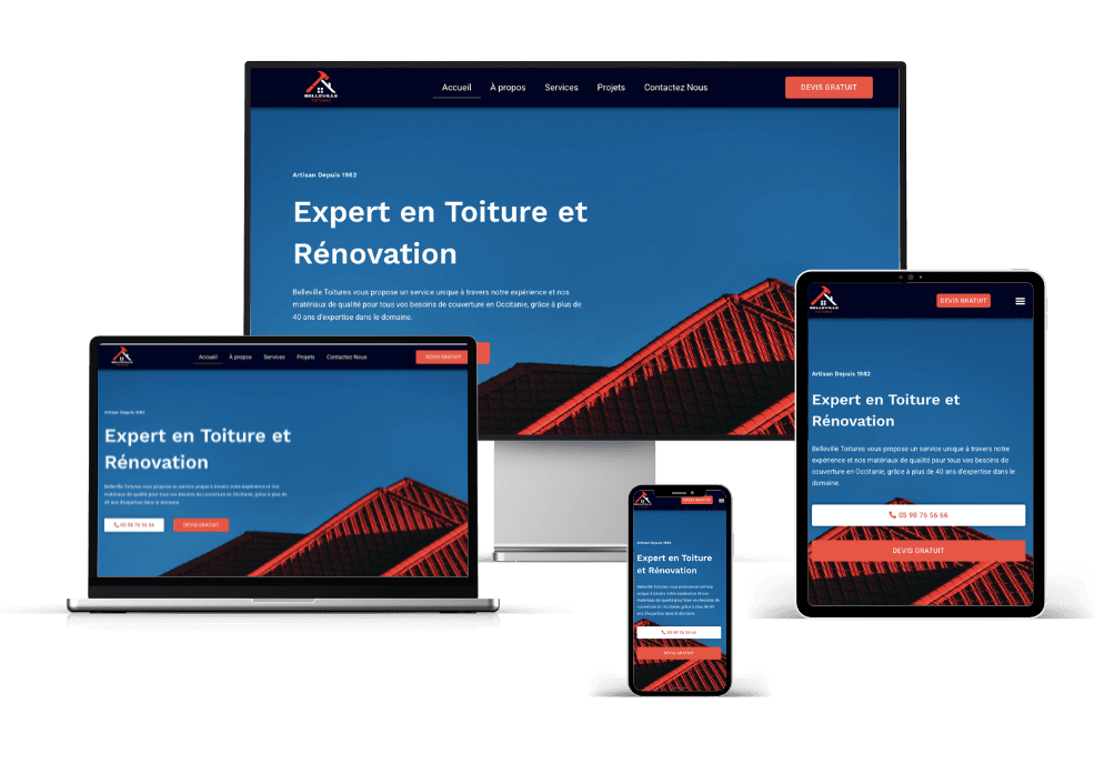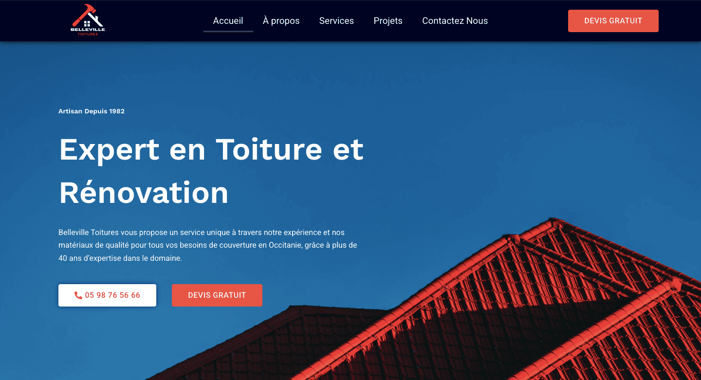 Réalisation d’un site vitrine d’artisan pour Belleville Toitures, une entreprise de couverture de toits.